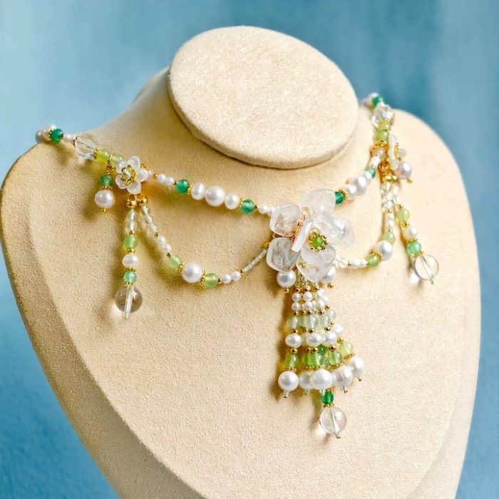 Materials: Our necklaces are mainly made with soft color-preserving copper, freshwater pearls, red agate, flower charms, leaf charms, and tassels.